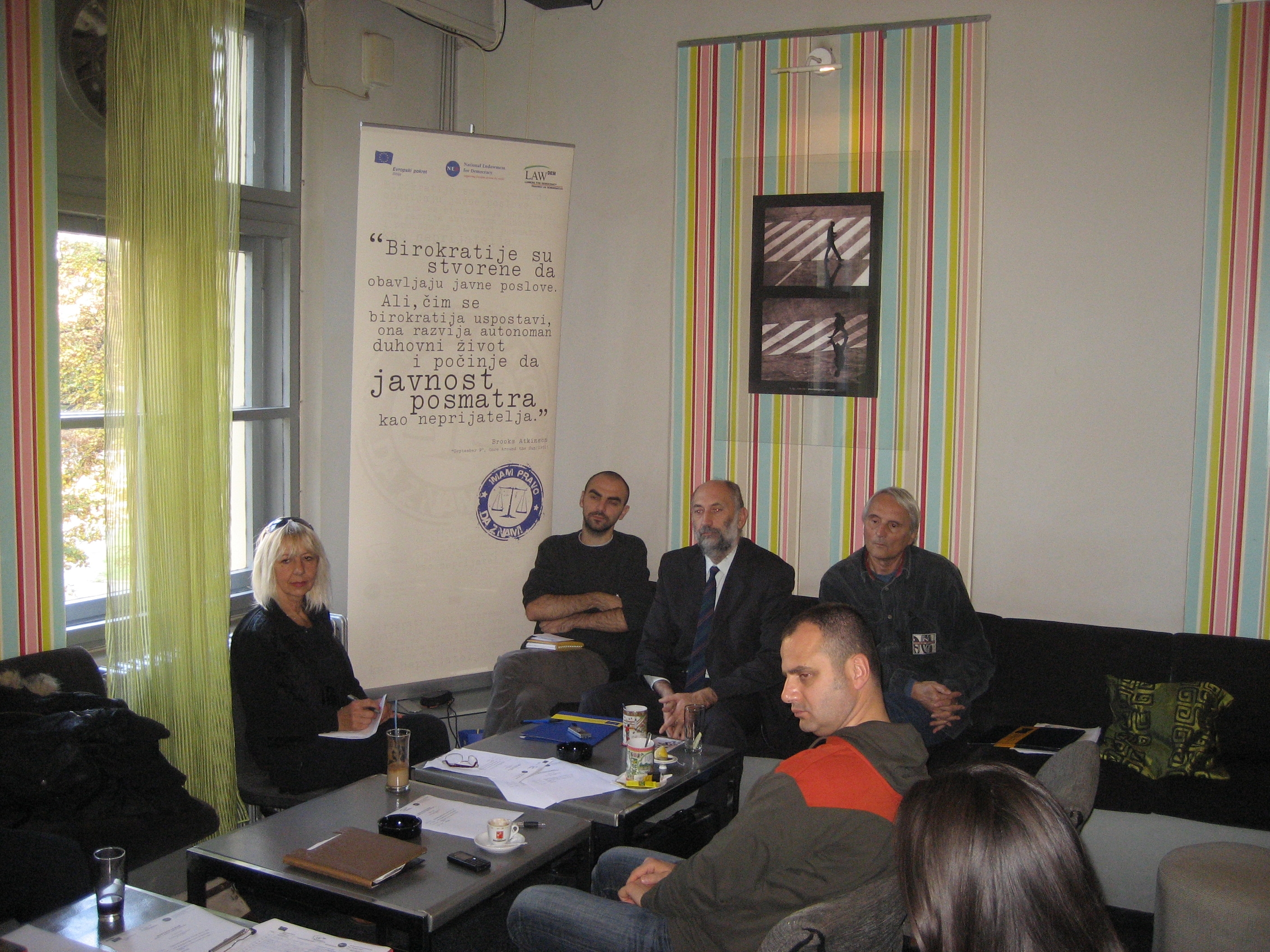 Na okruglom stolu bilo je 15 učesnika a cilj je bio razgovor sa predstavnicima javnih institucija, civilnog sektora, medija i političkih stranaka da bi se stekao uvid u probleme sa kojima se oni suočavaju po pitanju transparentnosti rada lokalne uprave i lokalnih funkcionera i da se konstruktivnom raspravom i razmenom mišljenja doprinese promeni postojeće prakse u radu javnih institucija. Takođe je razmatrana i anketa koja je izvršena u 4 javna preduzeća u Zrenjaninu.